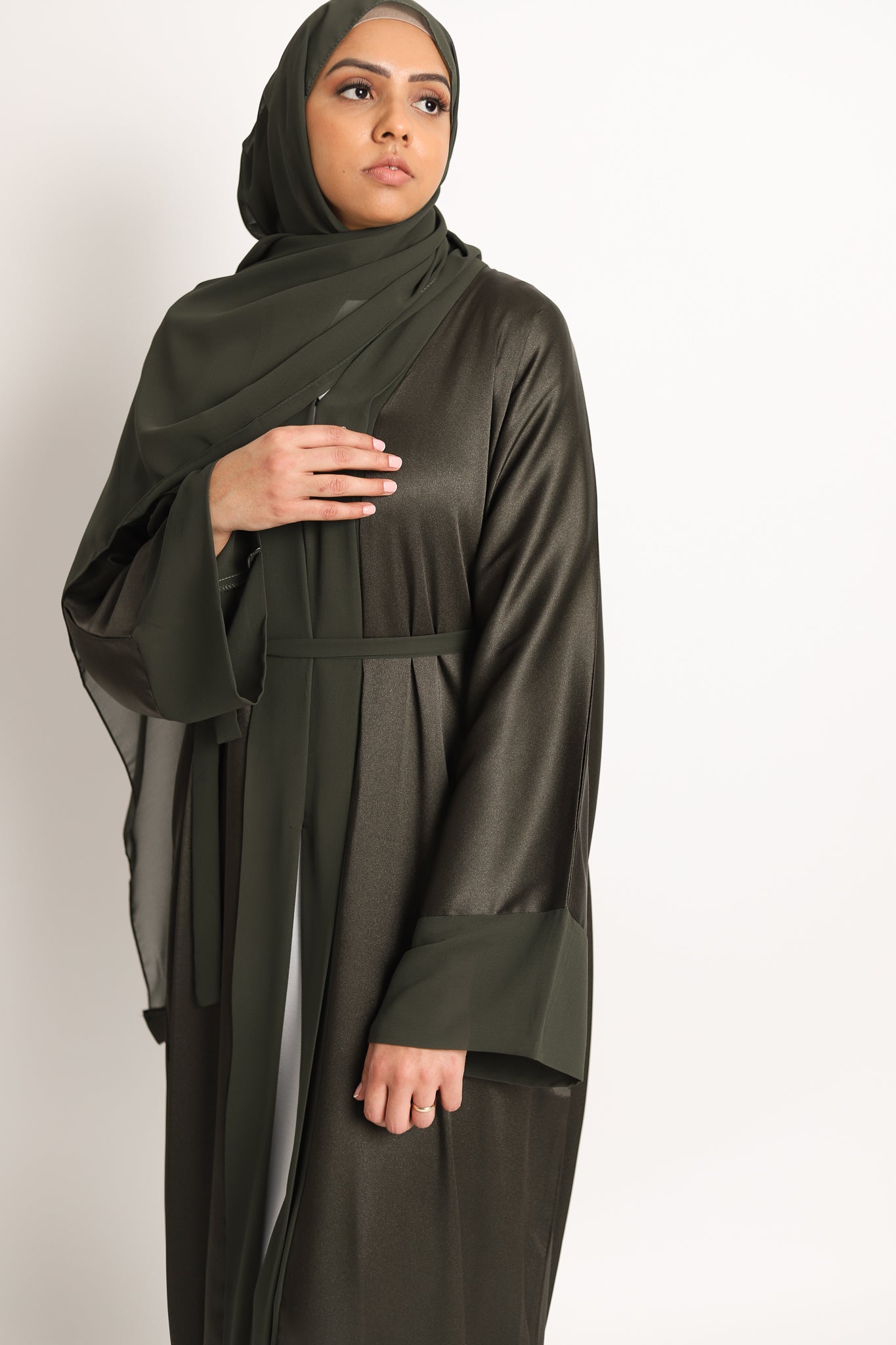 Sahar Open Abaya - Dark Olive