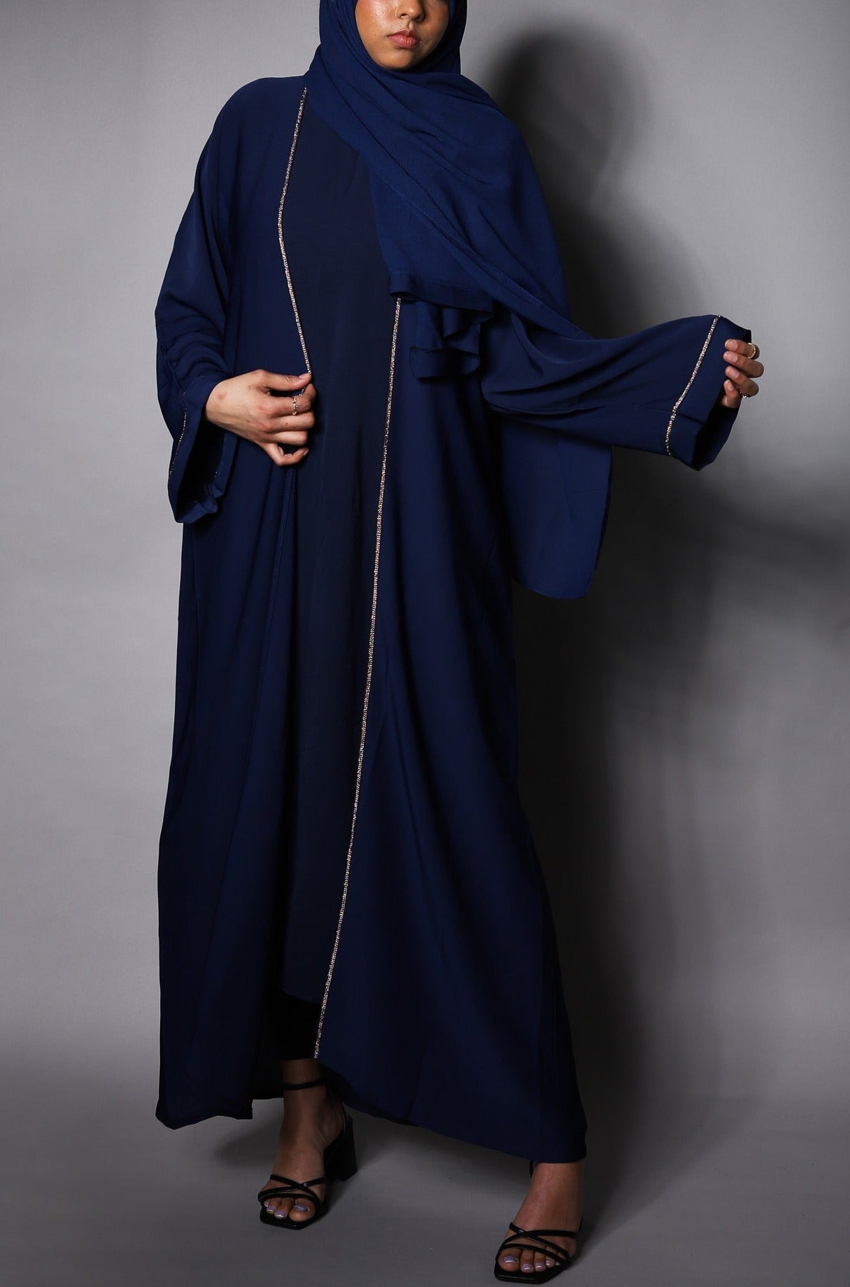 Layali Open Abaya - Navy