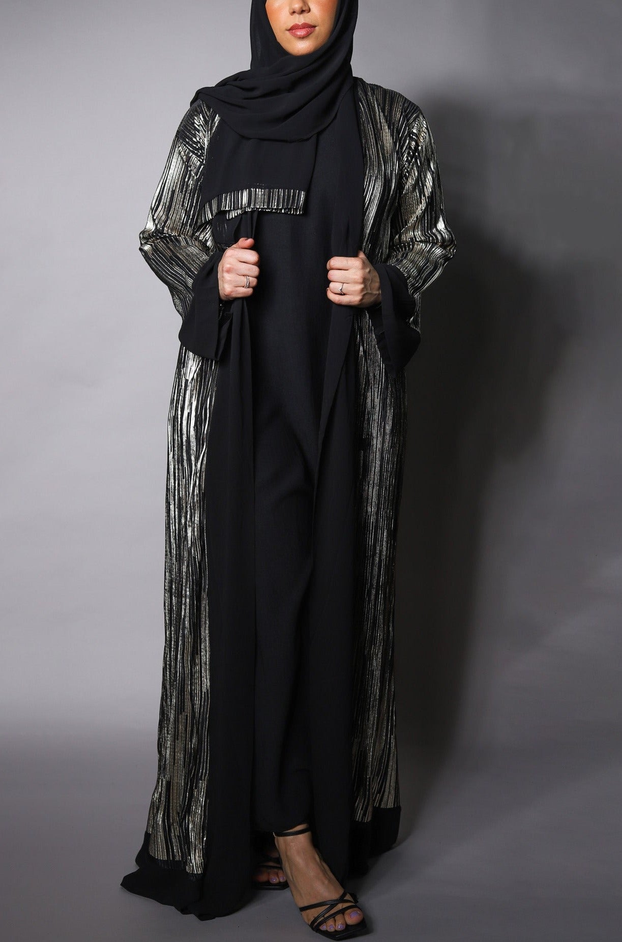 Sara Open Abaya with Gold Detail